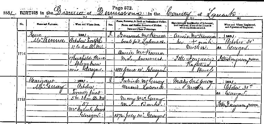 This confirms that I have the right birth at Glasgow, Dennistown in 1881 for Margaret McGoey.