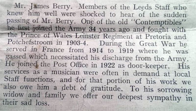 1908 Dec 3. Appointed a Bandsman in the Leincesters