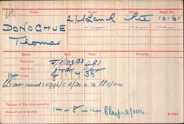 Sheenah Collins has this information on her great uncle Thomas Donoghue