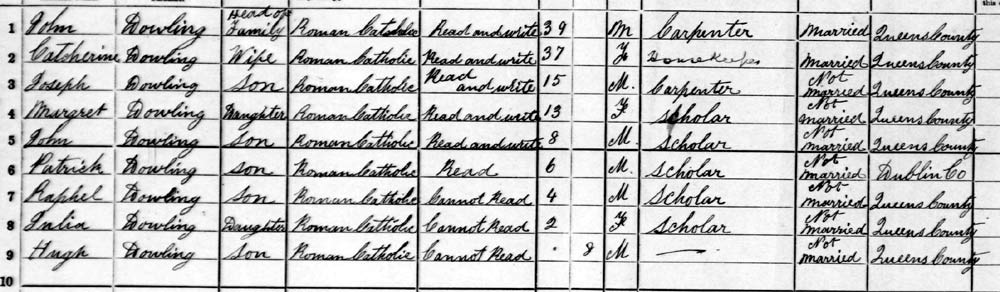 This would appear to be him in the 1911 census, listed as a carpenter among the residents Maryborough All are Catholic, can read and write. The children are all single, and the parents have been married for 27 years and have had 15 children at this time, of whom 11 are living (but only 8 living at home)
