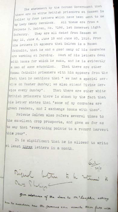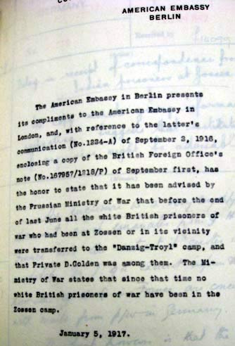 1916 July FO383/288 reports that prisoners from Zossen were moved to Danzig-Troyl including Pte D Golden