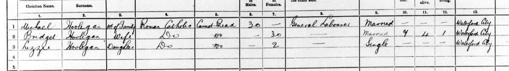 1911 census has his brother Michael living in New St, Waterford as on his medal card. Incorrectly written by the enumerator as "Hooligan"