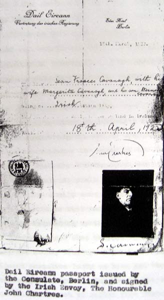 1922 Feb He is summoned to Berlin by the Irish Envoy, John Chartres, and get a Dail Eireann passport for himself and his family. He got a Dail Eireann passport on 18 March 1922, which gave him and his family a month to get to Ireland.