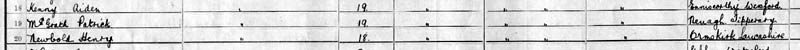 This points to a birth in Nenagh about 1891/1892. This could be him in as much as the right age born in Nenagh in 1901 census and not 1911 census for Nenagh (same family in 1911 without Patrick, and living in Falvey's Lane)