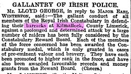 1920 May 28. Attack on Killmallock Barracks.There were 28 RIC men in the barracks (McCarthy says 18 men) and the attackers were about 30 men with another 30 - 40 involved in guarding and scouting. Despite a night long battle, in which the IRA broke a hole in the barracks from a nearby building and threw petrol into it and tried to burn the building, the RIC (under Sergeant Tobias O'Sullivan) did not surrender. They withdrew to an outhouse. Two RIC men were killed (Sgt Thomas Kane and Constable Joseph Morton) and one IRA man (Capt Liam Scully from Glencar, Co Kerry). IRA men from East Clare, Cork, Tipperary as well as Limerick took part in the attack. Constable Arthur Hooey and Constable Barry were among six RIC men wounded. RIC reprisals followed with the burning of houses, a creamery and a public hall. The Kilmallock Barracks building is now a bank, with a small plaque above the driveway commemorating the death of Liam Scully in 1920.